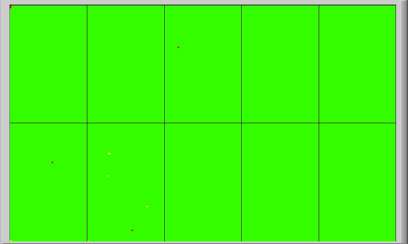 Unbumped pixels are red, dead are black, noisy are yellow, and undecoded are blue