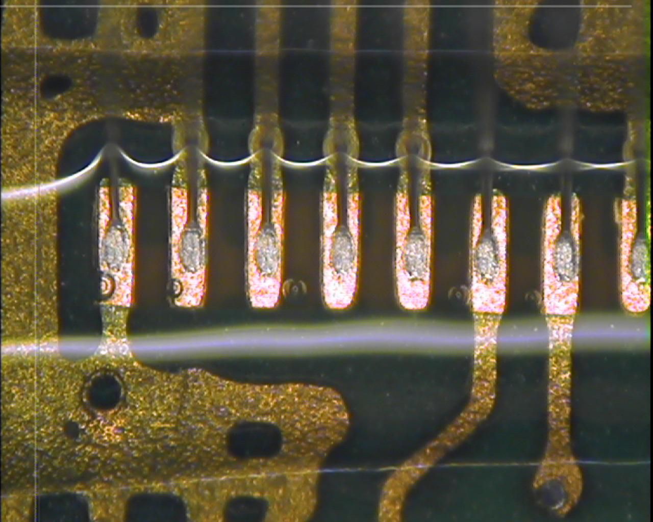 ![]() | Small bubbles in encapsulant near VHDI pads for wirebonds to ROC0 channels 1-7. |
