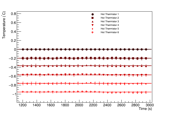 Hot Fluxmeter Temperatures Relative to Hottest Thermistor (C), 0, -0.200829, -0.367523, -0.573115, -0.764043, -0.95767