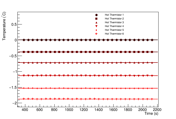 Hot Fluxmeter Temperatures Relative to Hottest Thermistor (C), 0, -0.380889, -0.713757, -1.13618, -1.5296, -1.87334