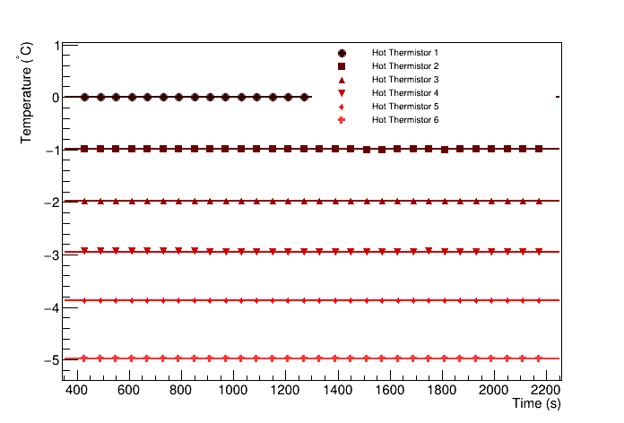 Hot Fluxmeter Temperatures Relative to Hottest Thermistor (C), 0, -0.993162, -1.97321, -2.94199, -3.87021, -4.9827