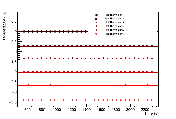 Hot Fluxmeter Temperatures Relative to Hottest Thermistor (C), 0, -0.742991, -1.33126, -2.03185, -2.6792, -3.41489