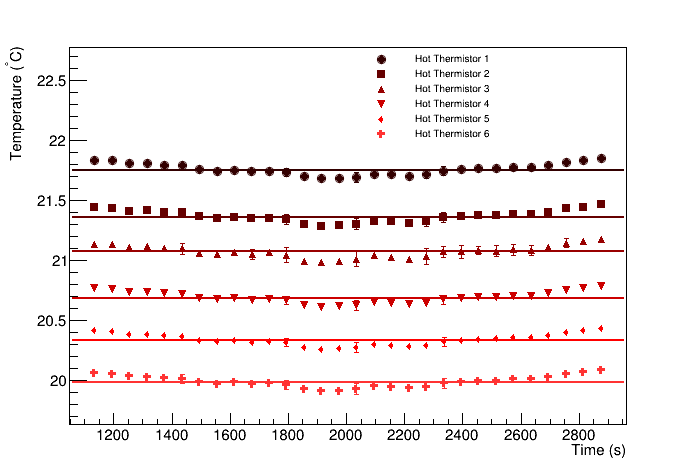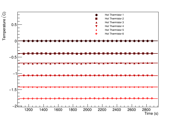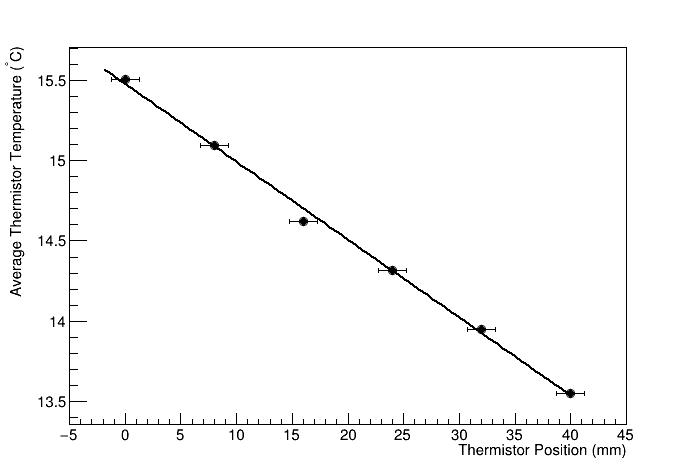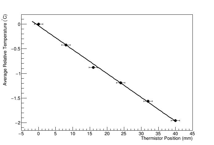 Analyst, Souvik Das Analysis date, 4/26/2023 Apparatus inter-thermistor distance (mm), 8 Apparatus thermistor bore diameter (mm), 1.27 Apparatus fluxmeter width (mm), 50.8 Apparatus fluxmeter thickness (mm), 6.36 Apparatus fluxmeter conductivity (W/mK), 355 Heater Biases: 0, 0, 0, 0, 0, 0 Cooler Biases: 0, 0, 0, 0, 0, 0 Hot fluxmeter flux (W/m^2), 15669.9 +/- 595.096 Cold fluxmeter flux (W/m^2), 17191.4 +/- 653.744 Heat flux through sample (W/m^2), 16430.6 +/- 879.84 Heat flow through sample (W), 5.30854 +/- 0.284266 Temperature at hot end of sample (C), 19.6282 +/- 0.0901769 Temperature at cold end of sample (C), 15.8665 +/- 0.0471018 deltaT (C), 3.76171 +/- 0.101737 R (K/W), 0.708616, 0.0425106 RA (Km^2/W), 0.000130317, 8.01798e-06