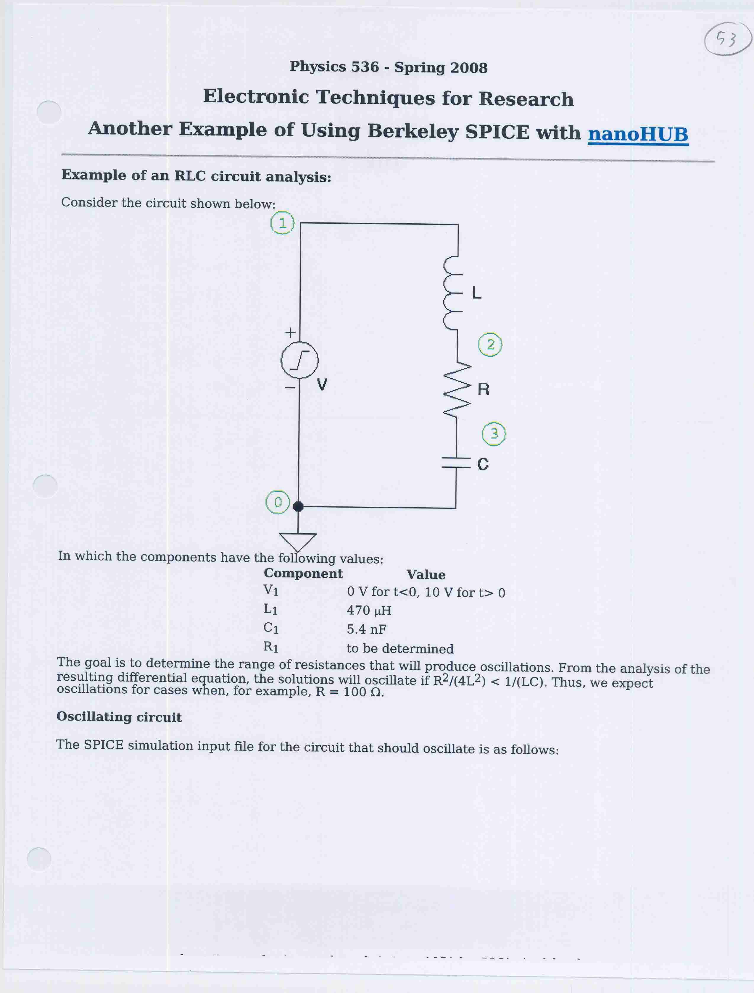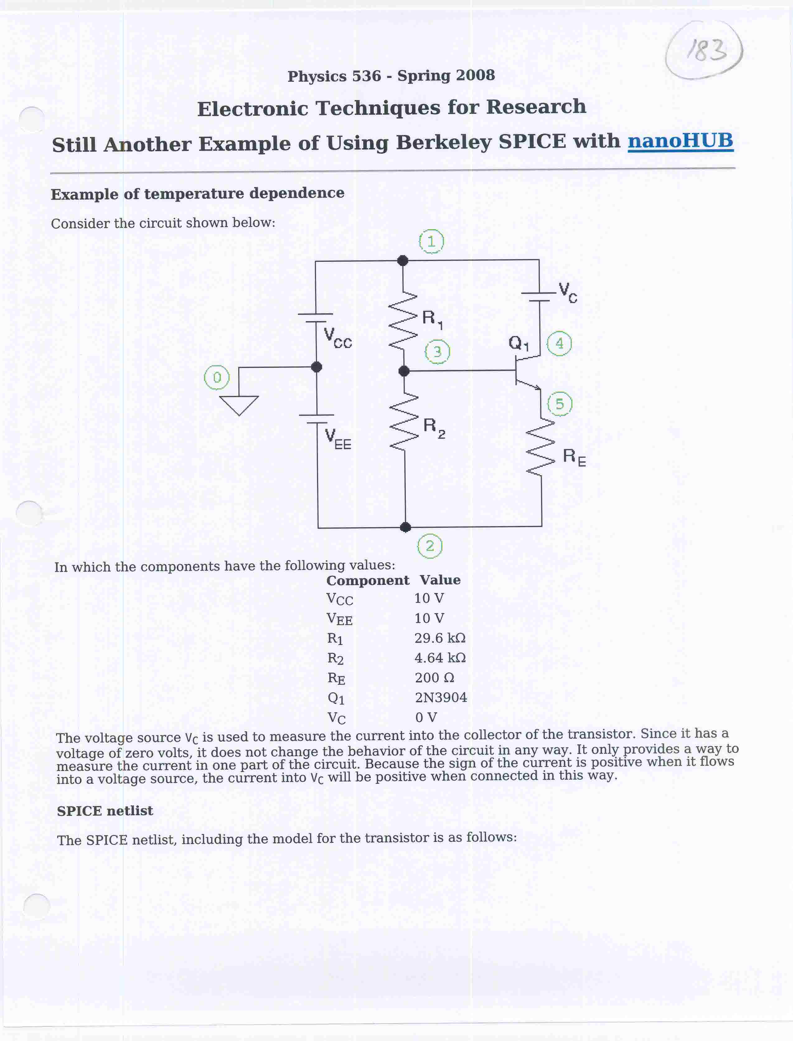 | Circuit description using SPICE |